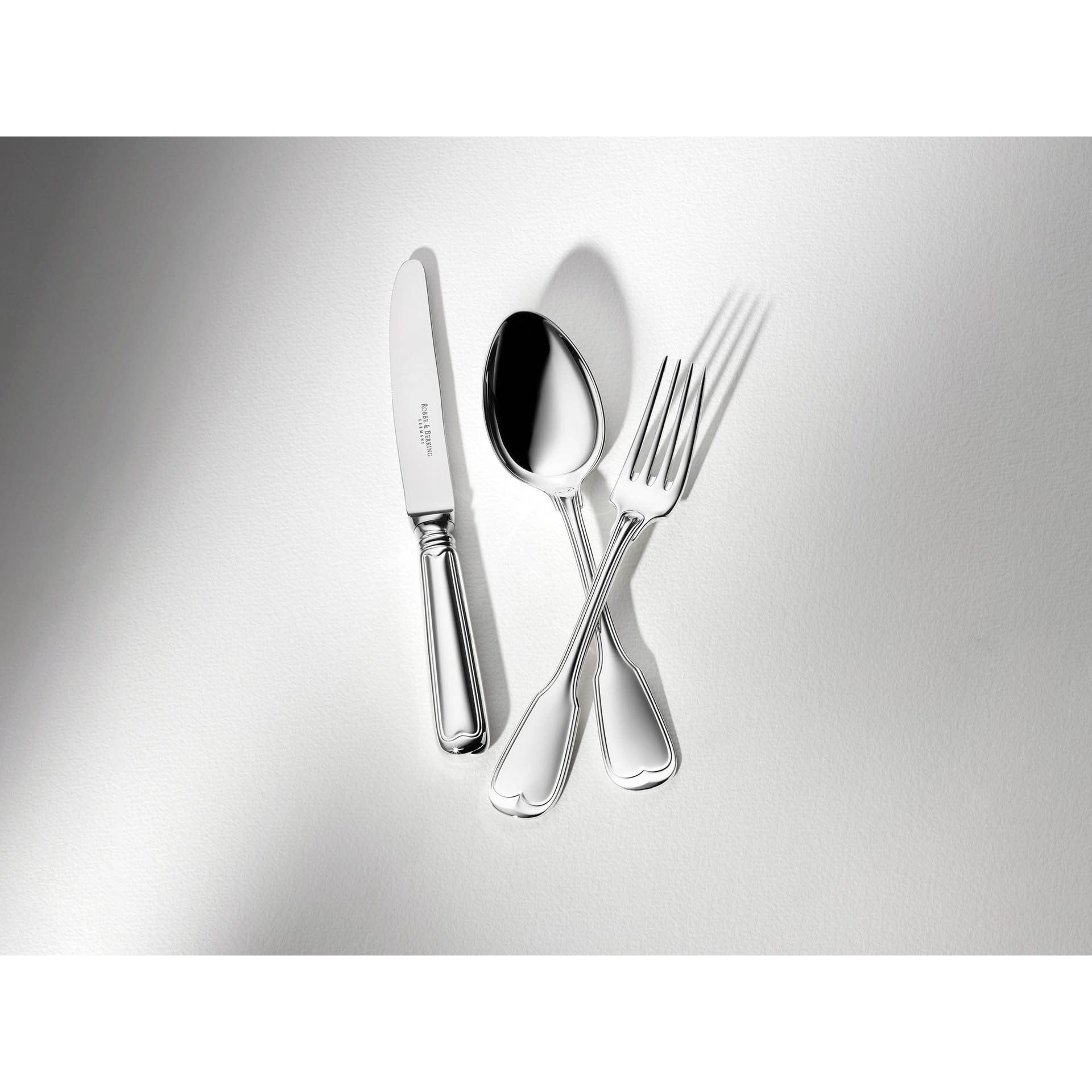 Das Alt-Faden Menümesser von Robbe & Berking ist Teil der Basisausstattung und wird bei fast jeder Mahlzeit eingedeckt. Robbe & Berking achtet darauf, dass der Messergriff austariert ist und verlagert den Schwerpunkt des Messers nach hinten – so berührt die Klinge nie das Tischtuch. Es sind diese kleinen Details, die echte Perfektion ausmachen. Die Klinge des Menümessers ist aus hochwertigem Klingenstahl gefertigt und wird in liebevoller Handarbeit in das Hohlheft eingesetzt. Bestecke in Menügröße sind kleiner und handlicher als das festliche Tafelbesteck, aber größer als das Vorspeisen- und Dessertbesteck. Es eignet sich damit hervorragend für den alltäglichen Gebrauch.