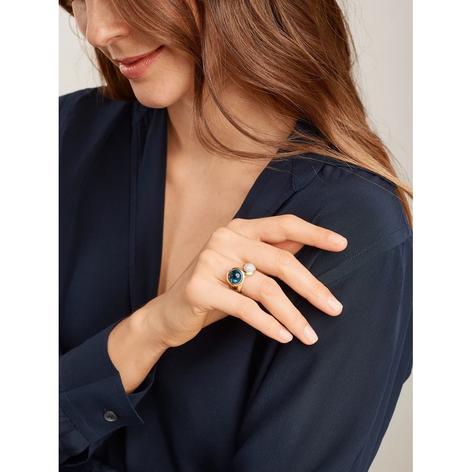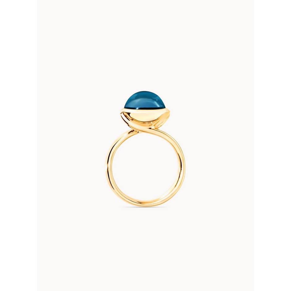 Unser BOUTON Ring large ist mit einem schönen London Topas Cabochon versehen und in einer unendlichen Vielfalt von Edelsteinen und allen Goldfarben erhältlich. Kombinieren Sie die großen BOUTON Ringe mit der kleinen oder der Solitaire-Version!*