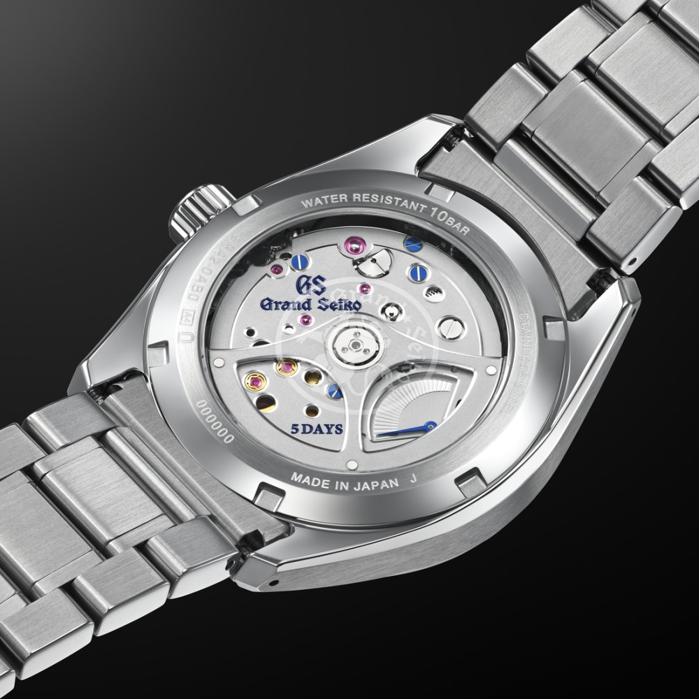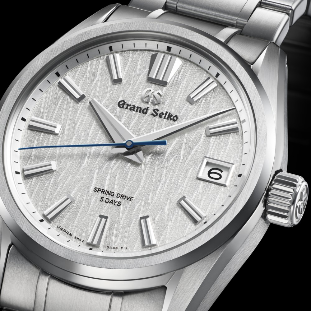 Nach der beliebten White Birch Hi-Beat ist dieses Modell eine neue Interpretation der Schönheit der umliegenden Weißbirkenwälder des Shinshu Watch Studio, in dem alle Grand Seiko Spring Drive Uhren hergestellt werden und das dieses Mal ein Spring Drive Uhrwerk beherbergt. Die Betrachtung des weißen Zifferblatts vermittelt das gleiche Gefühl wie ein Spaziergang durch diese Wälder. Das Gefühl, der wahren Natur der Zeit so nahe wie möglich zu kommen und die Ewigkeit mit den Fingerspitzen zu berühren. Das 40 mm große Edelstahlgehäuse wurde nach der Zaratsu-Methode poliert, mit einem verzerrungsfreien Spiegelfinish und einem zarten Finish, um dem Gehäuse seinen dynamischen Glanz zu verleihen. Die Ästhetik der Uhr entspricht dem Design der Kollektion Evolution 9: Die kräftigen Zeiger und die gerillten Indizes sorgen für perfekte Ablesbarkeit. Der Wechsel zwischen Zaratsu-Politur für ein spiegelglattes Finish ohne die geringste Verzerrung und dem gebürsteten Finish verleiht dem Gehäuse einen diskreten und harmonischen Glanz. Das Gehäuse verfügt über breite Hörner und einen niedrigen Schwerpunkt für perfekten Komfort am Handgelenk.