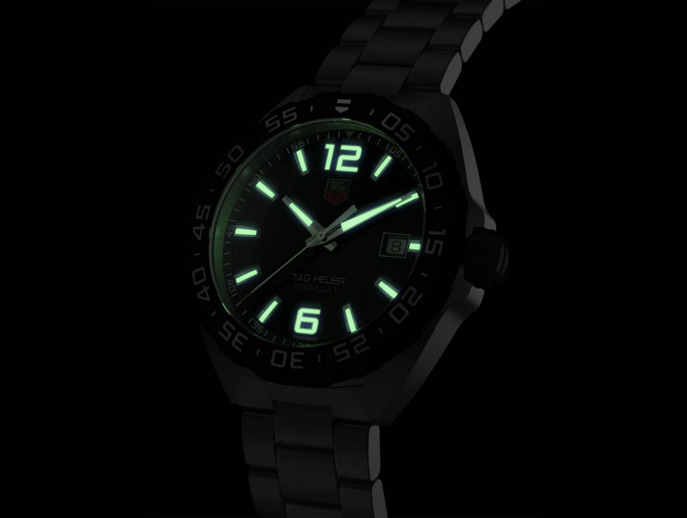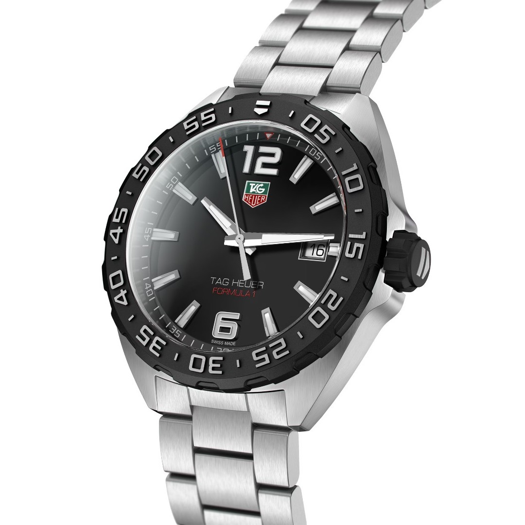 Eine schwarze Uhr mit einzigartigem Zifferblattdesign und echtem Motorsportgeist. Das 41 mm große Gehäuse aus gebürstetem Edelstahl wird durch die einseitig drehbare Lünette aus Edelstahl mit schwarzer PVD-Beschichtung und das Armband aus gebürstetem Edelstahl abgerundet. Sportlich, stoßfest, wasserdicht bis 200 Meter.