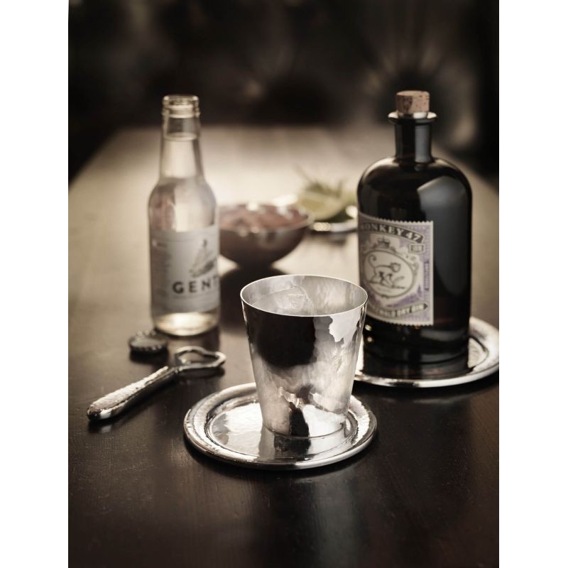 Warum soll ein delikates Getränk eigentlich erst im Gefäß oder im Mund seine volle Wirkung entfalten? Mit dem Martelé Flaschenteller von Robbe & Berking macht es auch schon auf dem Tisch eine gute Figur. Besonders empfehlenswert in Kombination mit den passenden Gläsertellern von Robbe & Berking. Ein gelungenes Set für eine stilvolle Barkultur.