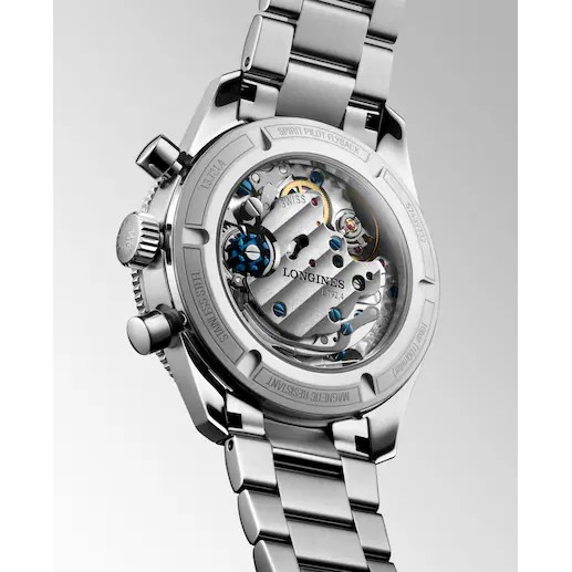 Die LONGINES Spirit Pilot Flyback Kollektion verkörpert den unermüdlichen Antrieb der Marke zur Innovation. Dieser Chronograph mit Flyback-Funktion unterstreicht die wegweisende Expertise von LONGINES auf diesem Gebiet. Die Marke mit der geflügelten Sanduhr lancierte Anfang der 1930er Jahre das erstes Modell mit Flyback-Funktion. Sie erhielt am 16. Juni 1936 das Patent für diese Technologie – ein weltweites Novum. Die Flyback-Komplikation wurde als bahnbrechendes Instrument für Piloten entwickelt. Sie ermöglicht die Messung aufeinanderfolgender Flugabschnitte und steigert so die Effizienz der Navigation erheblich. Die Präzision der LONGINES Spirit Pilot Flyback wird durch ein exklusives LONGINES Kaliber gewährleistet, das mit einer Unruhspiralfeder aus Silizium ausgestattet ist und unempfindlich gegenüber Magnetfeldern bleibt. Dieses mechanische Uhrwerk mit Handaufzug wurde von der COSC offiziell als Chronometer zertifiziert.