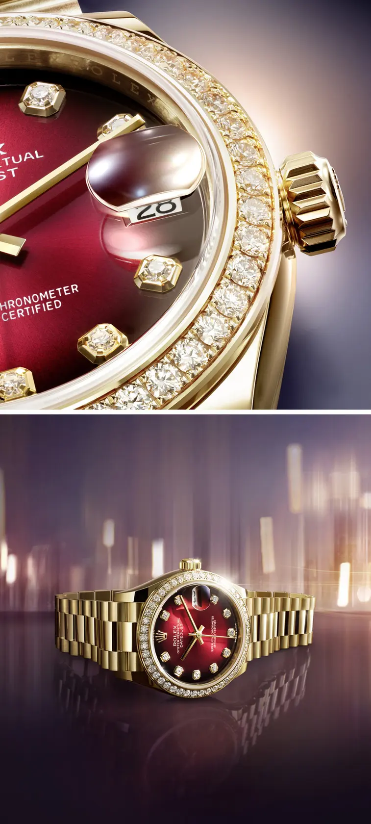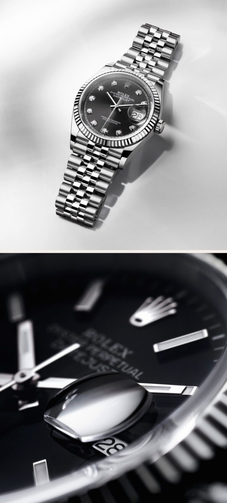 Die Datejust erfindet sich ständig neu. Ihre vielfältigen Neuinterpretationen verdeutlichen das Know-how von Rolex bei der Zifferblattfertigung. Mit ihren verschiedenen Lünetten – poliert, bombiert, geriffelt oder mit Diamanten – hat die Datejust die Epochen stilvoll durchschritten, wobei sie stets perfekt zur Persönlichkeit ihrer Träger passte.